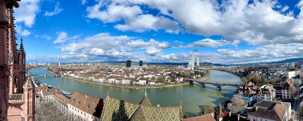 Panoramabild vom Münsterturm in Basel mit dem Rhein